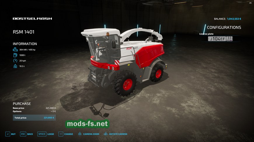 Мод на комбайн Rostselmash 1401 v1.0.0.0 для Farming Simulator 22