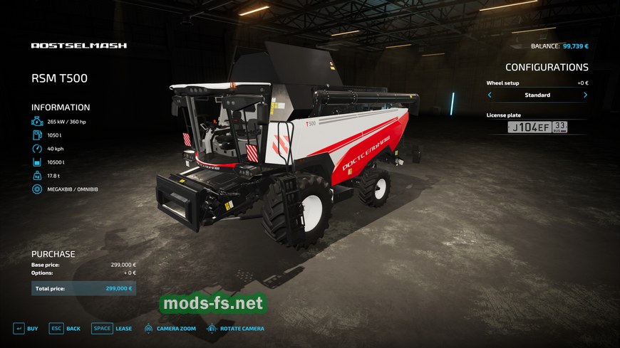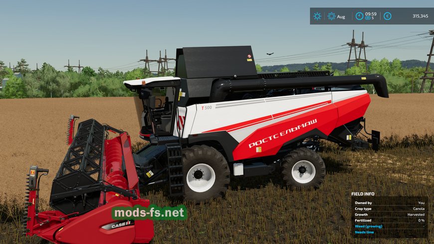 Мод на комбайн Rostselmash T500 v1.0.0.0 для Farming Simulator 22