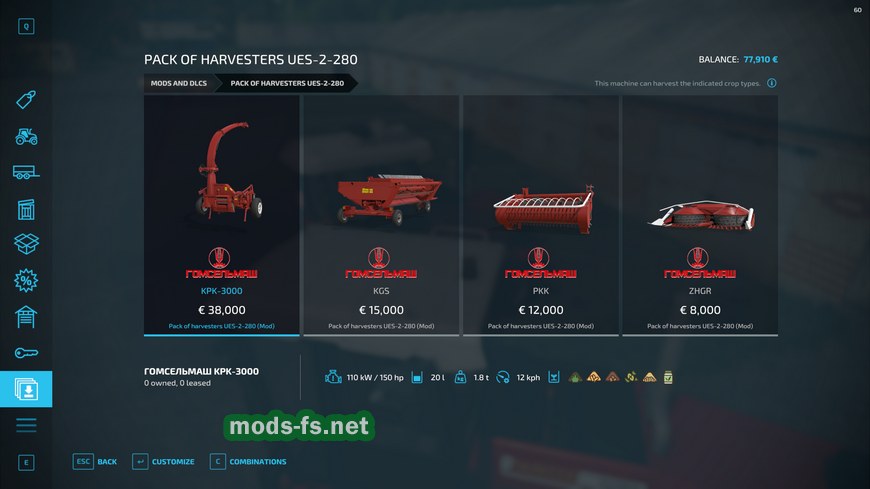 Мод на пак жаток УЭС-2-280 v1.0.0.1 для Farming Simulator 22