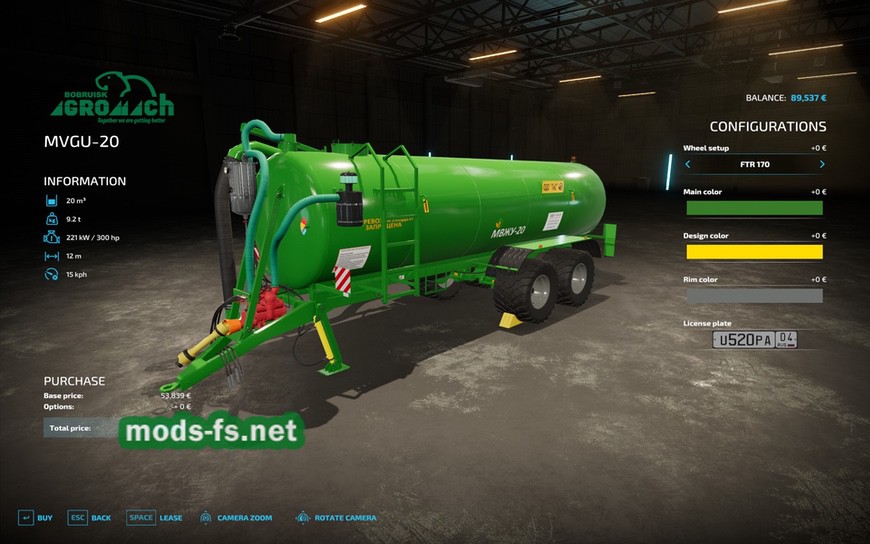 Мод на цистерну внесения жидких удобрений MVGU 20 v1.0.0.0 для Фермер Симулятор 22