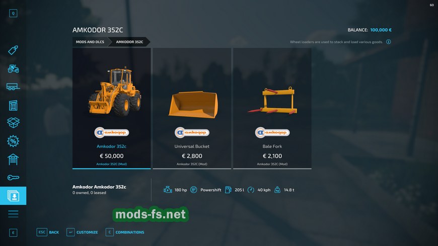 Мод на погрузчик Амкодор 352С v1.0.0.0 для Farming Simulator 22