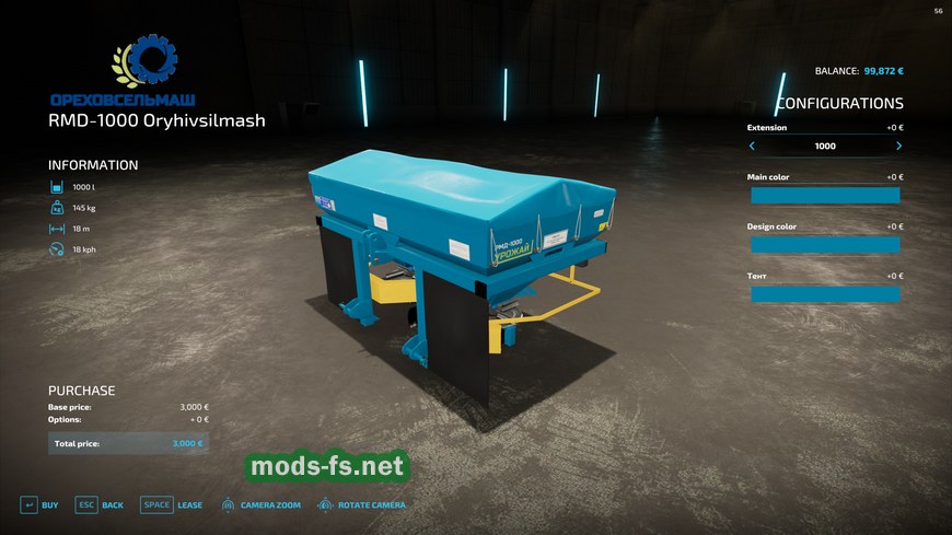 Мод на разбрасыватель РМД 1000 v1.1.0.0 для Farming Simulator 22
