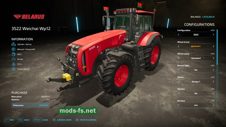Мод на трактор Беларус 3022/3522 v1.0.0.4 для Farming Simulator 22
