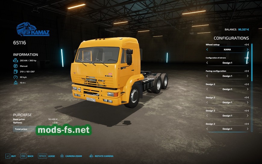 Мод на тягач Камаз 65116 v1.0.0.0 для Farming Simulator 22