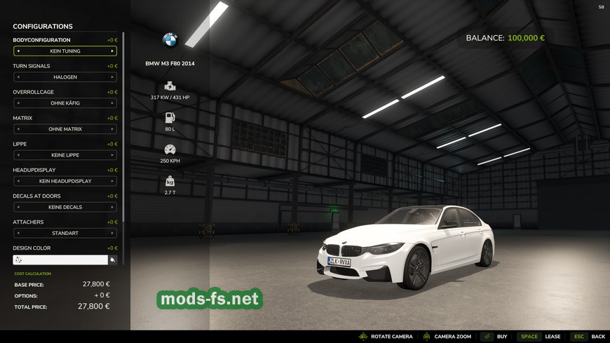 Мод на автомобиль BMW M3 F80 v1.0.0.0 для Farming Simulator 25