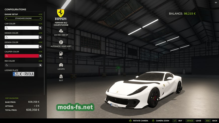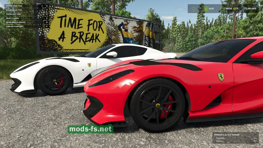 Мод на автомобиль Ferrari 812 Competizione v1.1.0.0 для Farming Simulator 25