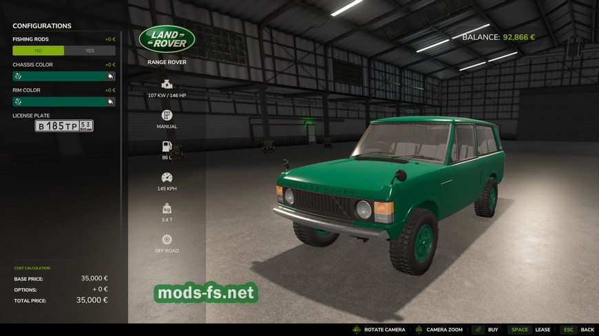 Мод на автомобиль Range Rover 1970 v1.0.0.0 для Farming Simulator 25