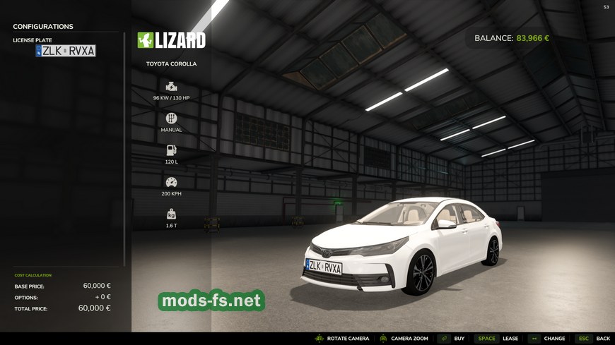 Мод на автомобиль Toyota Corolla v1.0.0.0 для Farming Simulator 25