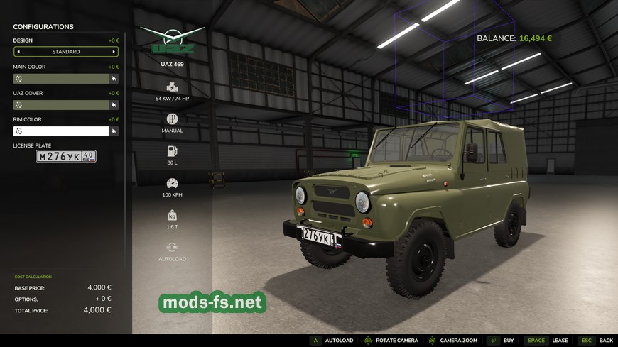 Мод на автомобиль UAZ 469 v1.0.0.0 для Farming Simulator 25