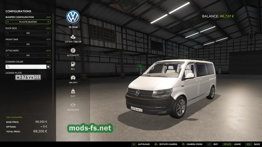 Мод на автомобиль Volkswagen T6 2016 v1.0.0.0 для Фермер Симулятор 25