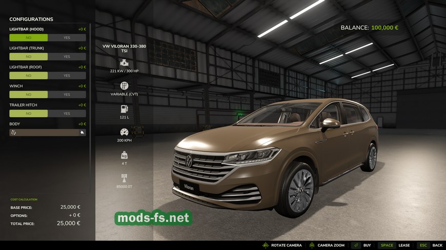 Мод на автомобиль Volkswagen Viloran 330-380TSI v1.0.0.0 для Фермер Симулятор 25