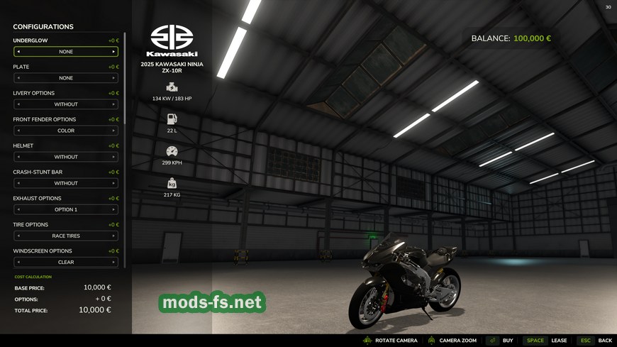 Мод на мотоцикл Kawasaki Ninja ZX-10R 2025 v1.0.0.0 для Farming Simulator 25
