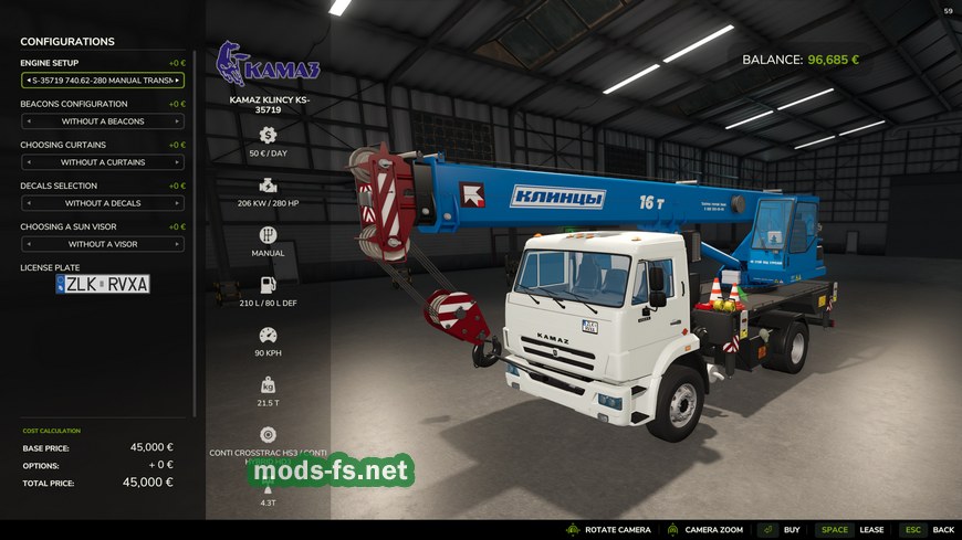 Камаз Клинцы 4×2 автокран для ФС 25. Использование мода IC обязательно!!
