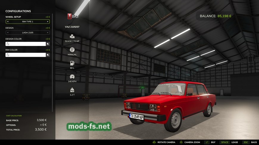 Мод на автомобиль ВАЗ 2105/07 v1.0.0.0 для Farming Simulator 25