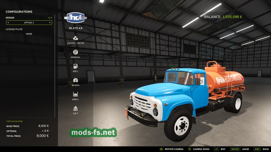 Мод на цистерну ZIL ATZ-4.9 v1.0.0.0 для Farming Simulator 25