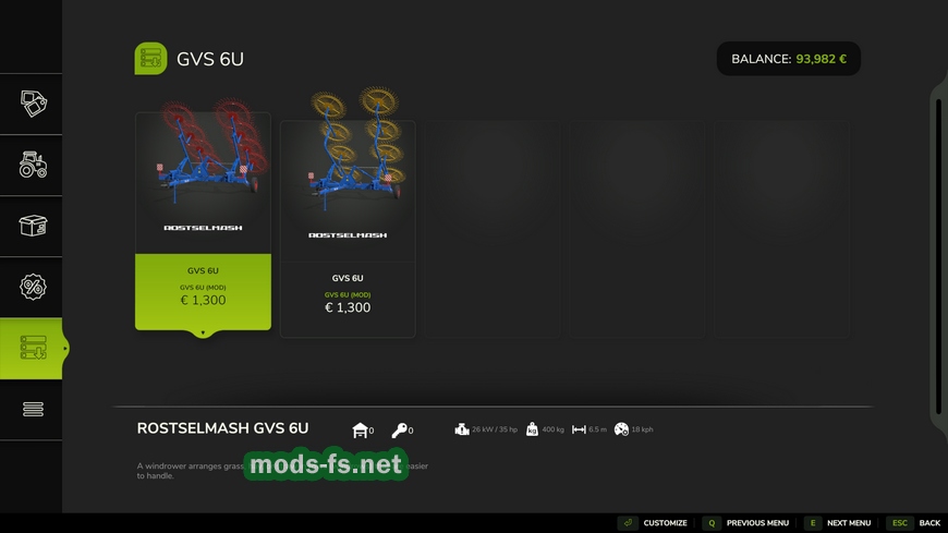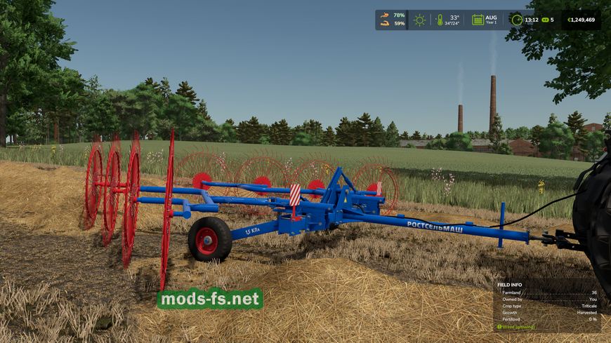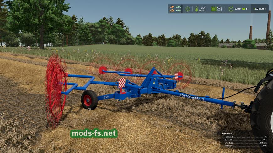 Мод на грабли Ростсельмаш ГВС 6У v1.0.0.1 для Farming Simulator 25