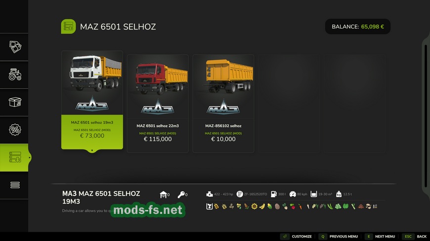 MAZ 6501 Сельхозник для ФС 25. Характеристики: