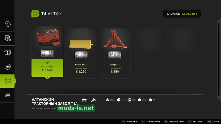 Мод на гусеничной трактор Алтаец Т-4А v1.0.0.0 для Фермер Симулятор 25