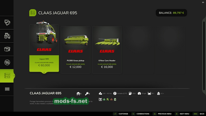Мод на комбайн Claas Jaguar 695 v1.0.0.0 для Farming Simulator 25