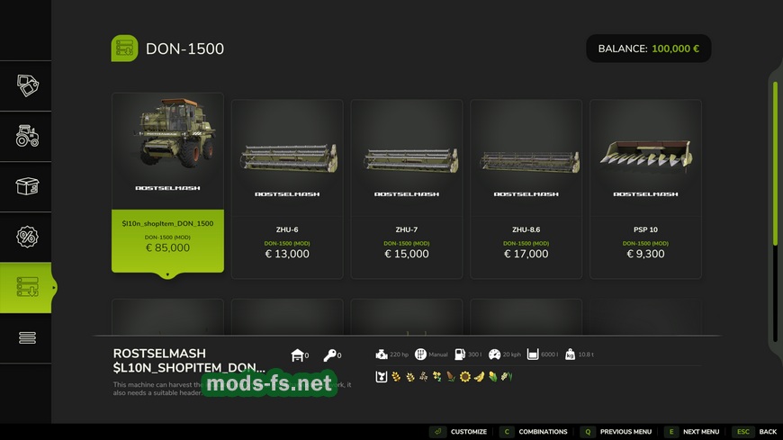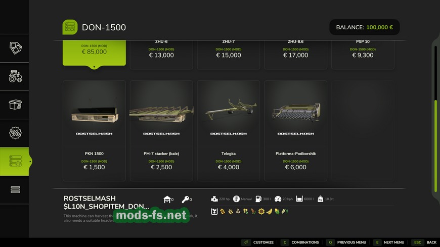 Мод на комбайн Don 1500 v1.0.0.0 для Фермер Симулятор 25