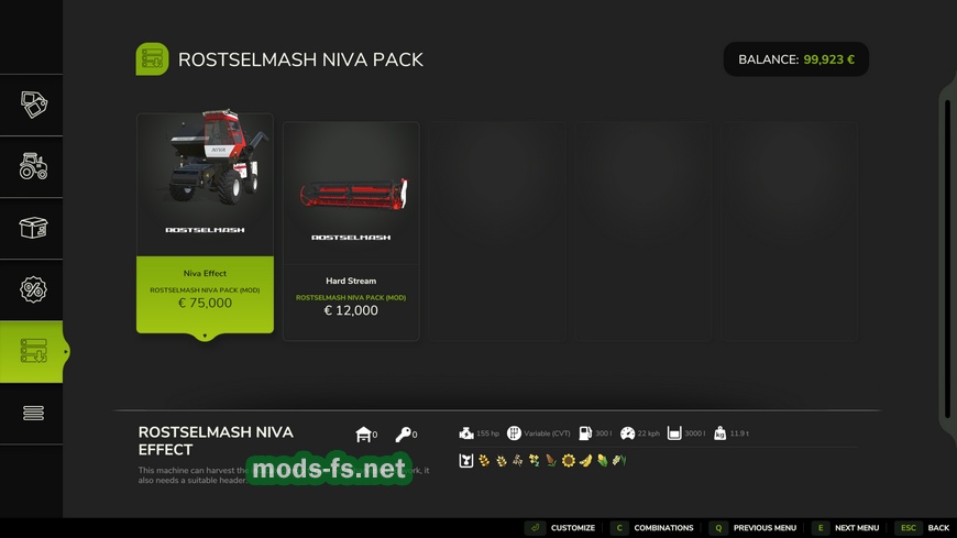 Мод на комбайн Rostselmash Niva Effect v1.0.0.0 для Farming Simulator 25