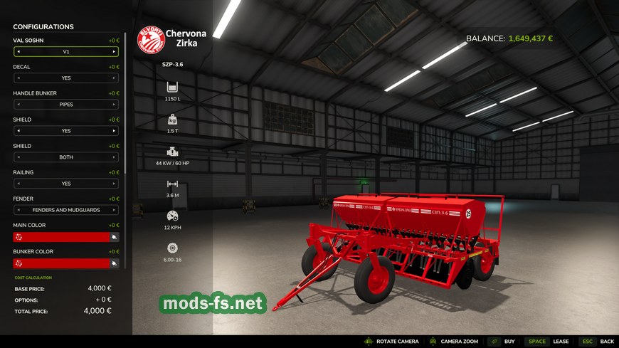 Мод на севалку СЗП 3.6 v1.0.0.0 для Фермер Симулятор 25