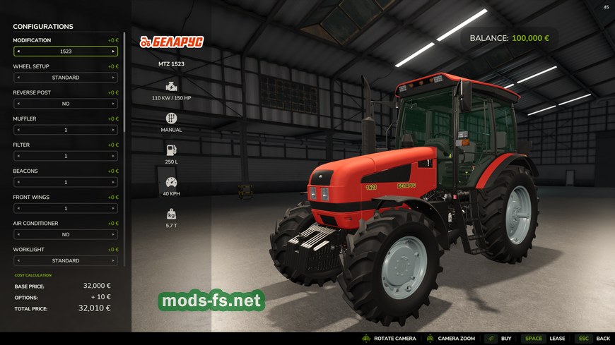 Мод на трактор Belarus 1523 v1.0.0.0 для Фермер Симулятор 25