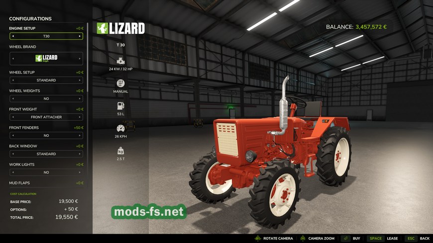 Мод на трактор Lizard T30 v1.0.0.0 для Farming Simulator 25