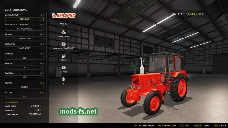 Мод на трактор МТЗ 80 v1.0.0.0 для Farming Simulator 25
