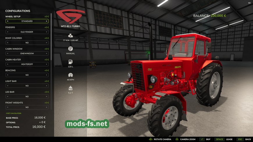 Мод на трактор МТЗ 82.1 Турбо v1.0.0.1 для Farming Simulator 25