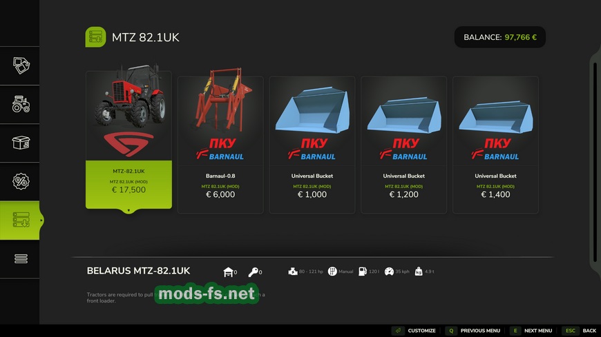 Мод на трактор MTZ 82.1 UK v1.0.0.0 для Farming Simulator 25