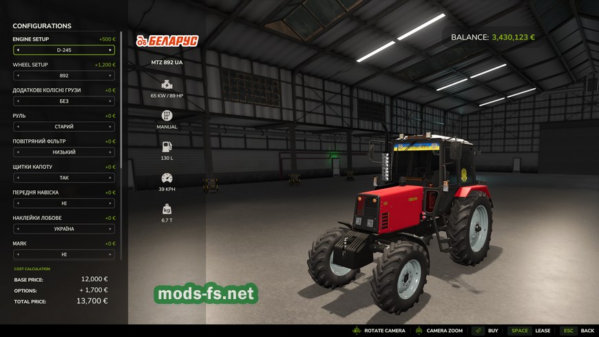 Мод на трактор MTZ 892 UA v1.0.0.0 для Farming Simulator 25