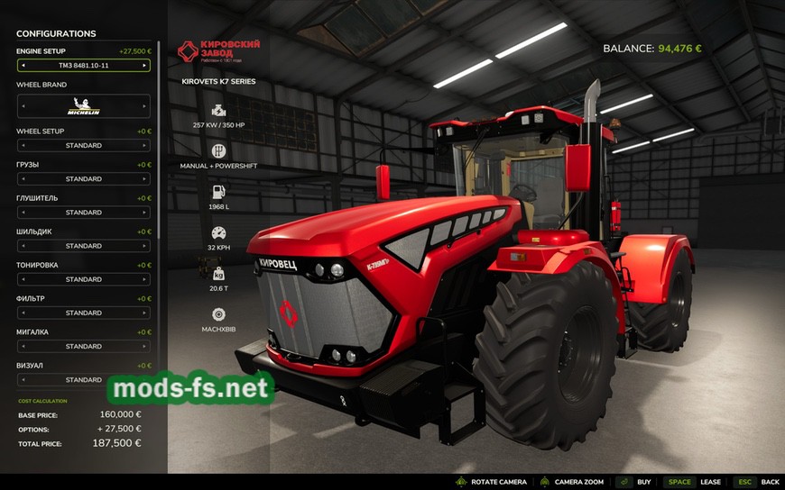 Кировец К7М для ФС 25. Изменения версии 1.1.0.0: