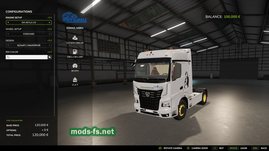Мод на тягач Камаз 54901 v1.0.0.0 для Farming Simulator 25
